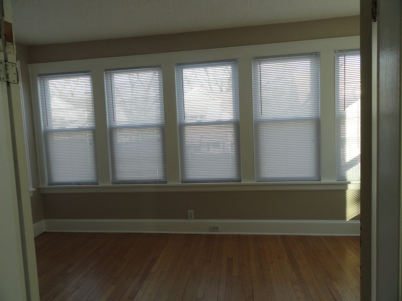 The apartment offers a large living room, four season sun room, eat-in kitchen